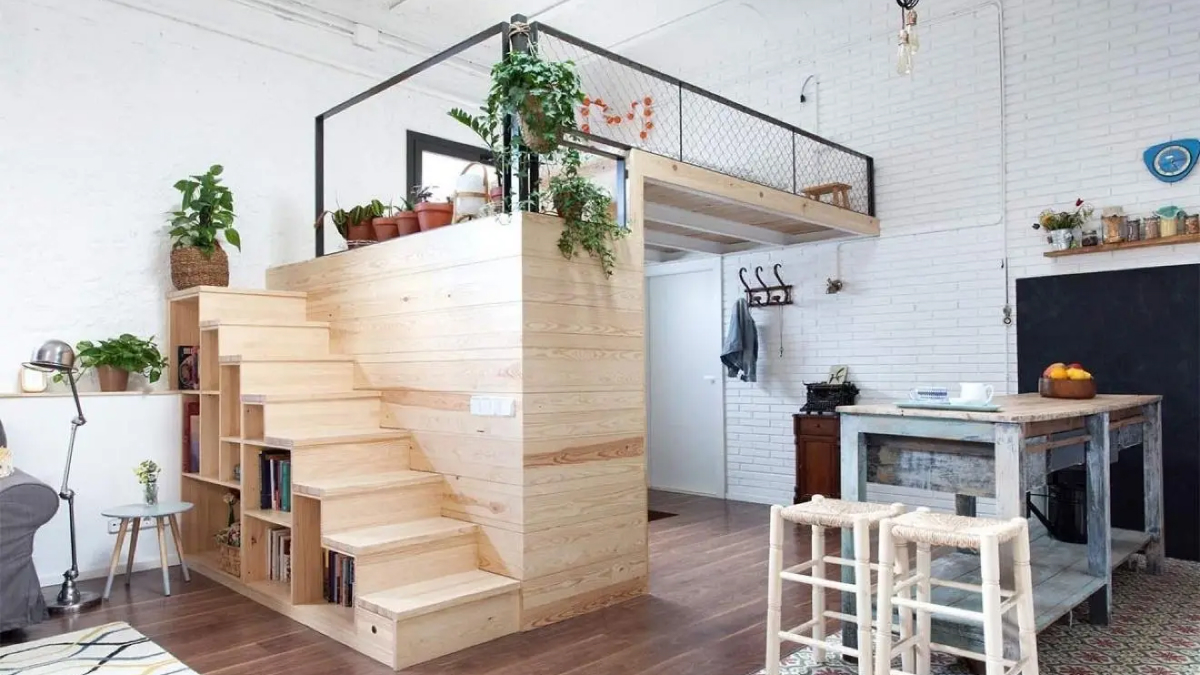 Kamar mezzanine biasanya cocok untuk rumah dengan langit-langit tinggi. Namun, ini dapat disesuaikan dengan desain yang tepat.